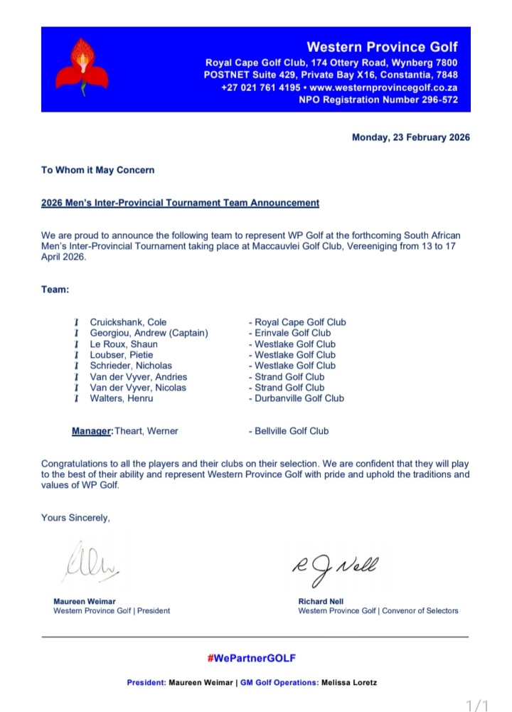 2026 MEN’S PREMIER IPT TEAM ANNOUNCEMENT